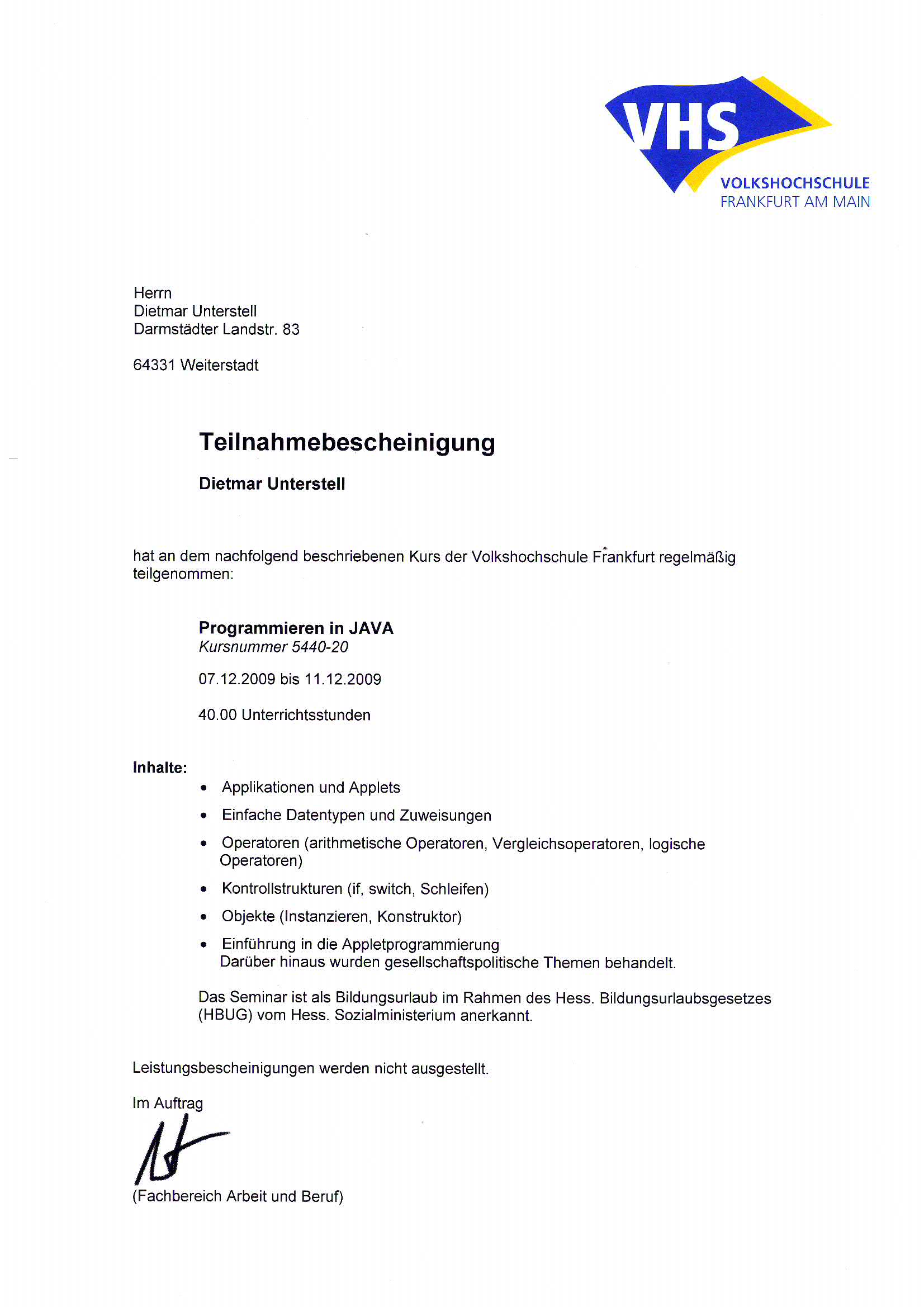 Volkshochschule, Frankfurt